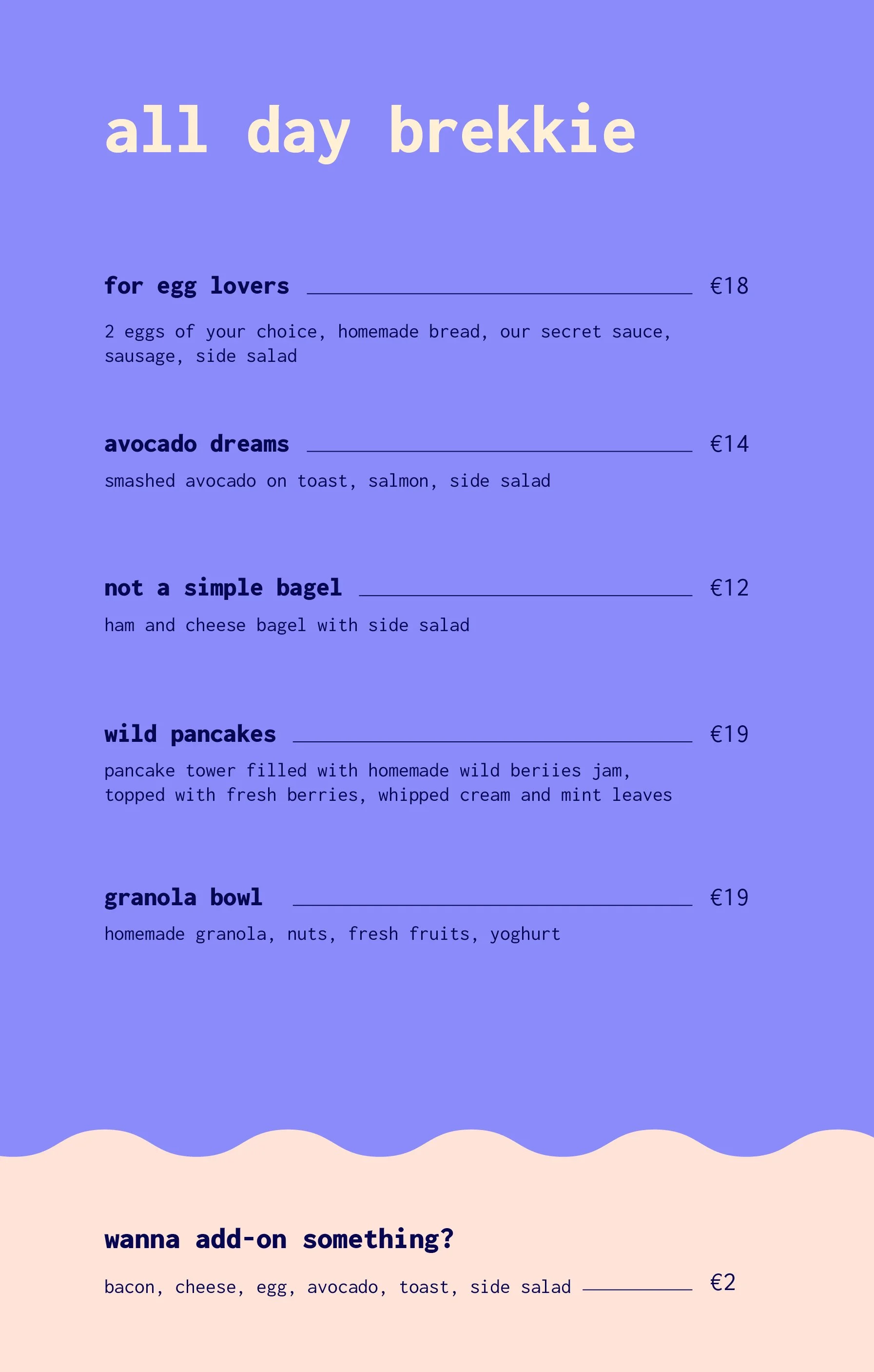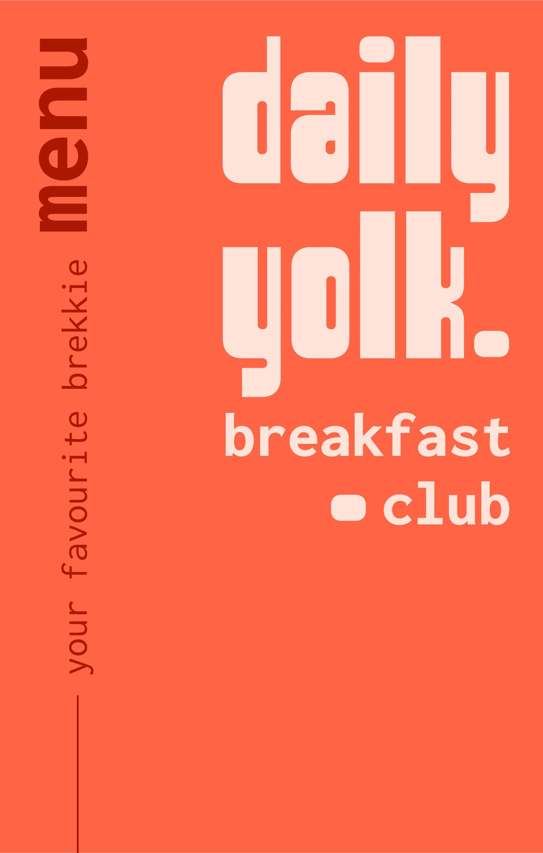 Daily Yolk is a brunch spot made for lazy mornings, golden eggs, and breakfast that refuses to run on a schedule. It’s less about the food alone and more about the feeling: slow, sunny, and just a bit cheeky. A place where you can wake up late and still eat like it’s 8am—because eggs don’t watch the clock, and neither do we. With cozy corners, playful taglines, and marching egg illustrations, Daily Yolk blends warm colours, bold type, and soft shapes to bring the fun back to brunch.